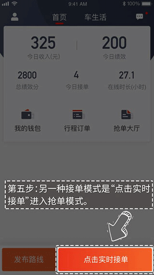 5、另一种接单模式是“点击实时接单”进入抢单模式。