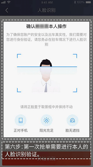 6、第一次接单需要进行本人的人脸识别验证。
