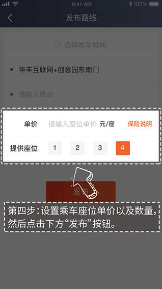 4、设置乘客座位单价以及数量,然后点击下方“发布”按钮。