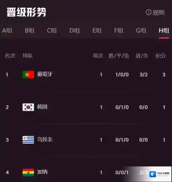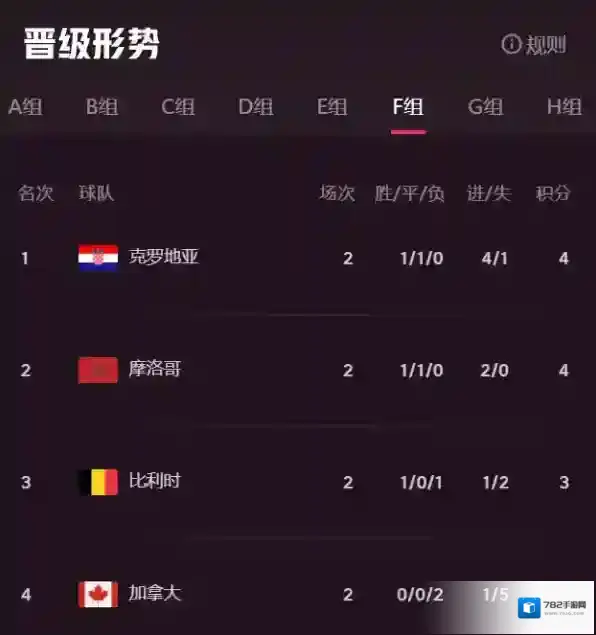 3、在这里我们即可看到8个小组目前的积分情况,孰强孰弱一看便知。