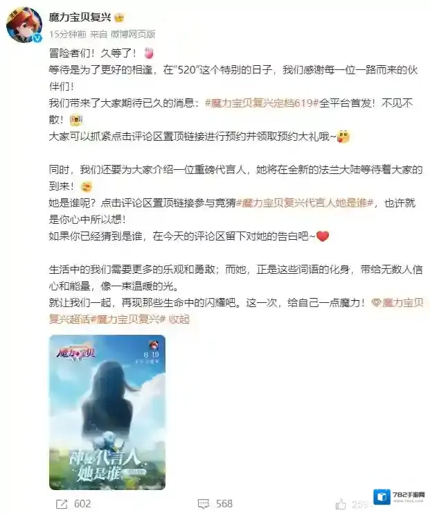 神秘代言人悬念迭起!魔力宝贝复兴定档6.19全平台首发!