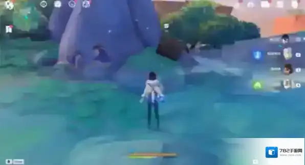 来到下图位置,击碎萃凝晶后,触碰3次水泡补全涂鸦后出现普通的宝箱。
