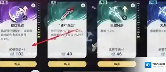 5、第三波:结束会出现另一个武装,选择猩红轮链,然后建议购买后三个。