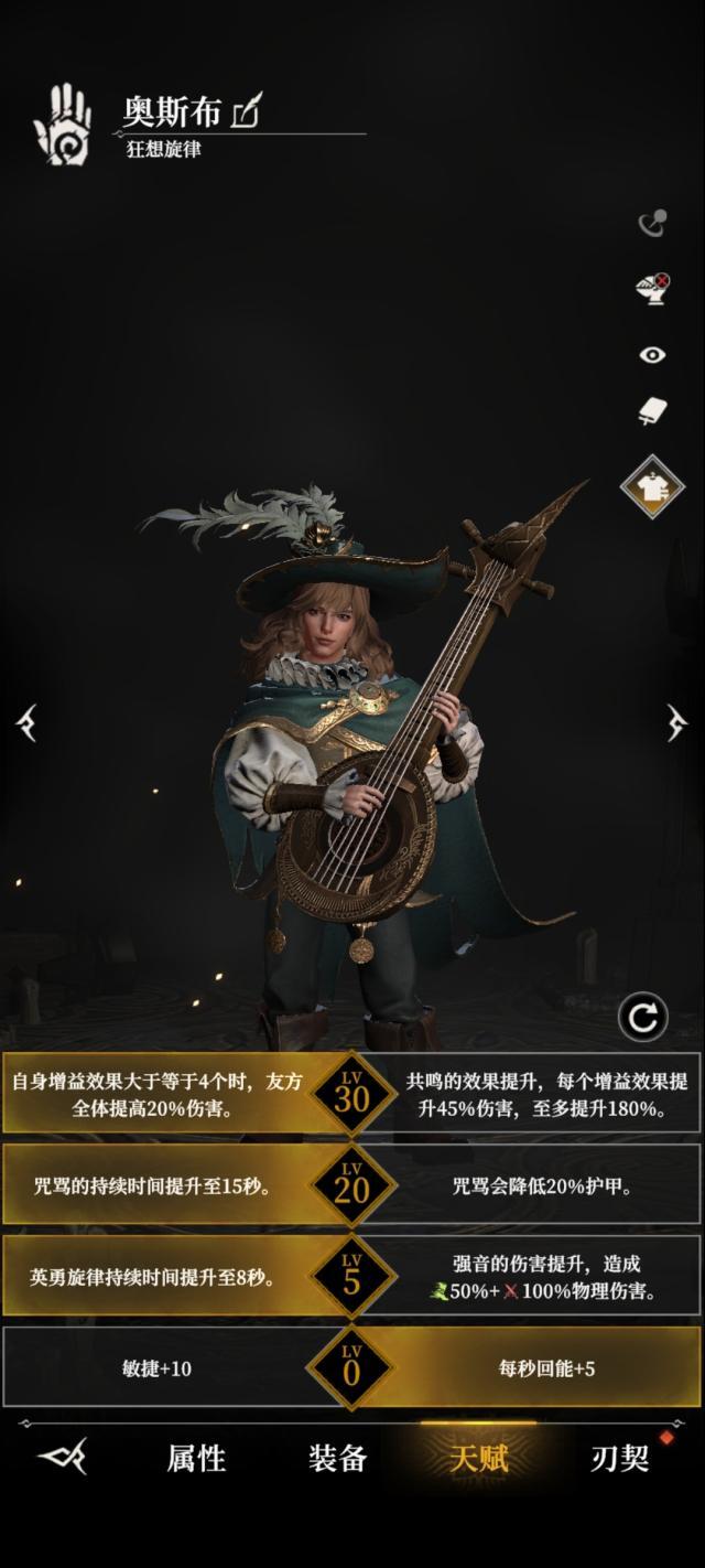 功能性辅助,开局控制一次,5级天赋三次抗伤,20级天赋概率眩晕,30级天赋全队加伤加暴击。