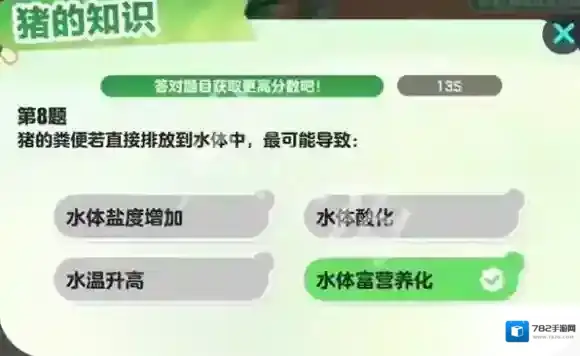 第8题:猪的粪便若直接排放到水中,最可能导致