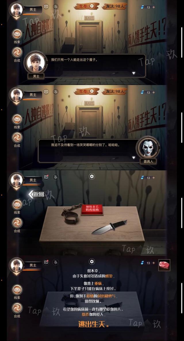 这个结局是必须死一个。两个同时死的话会卡着退不出房间。