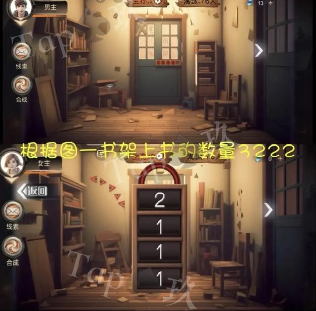 4-根据男主左侧屋子书架上书的数量(3222)打开红色盒子,获得红色三角传给男主
