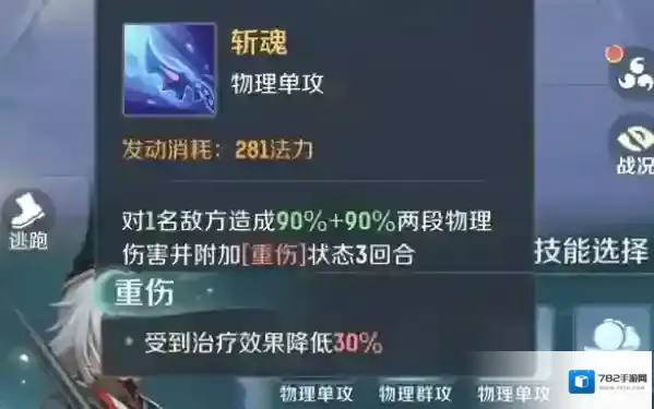 最后就是罗刹这个灵兽,它是个高爆发的输出型角色,打起架是很多玩家都公认的猛,它有个斩魂的技能,能选中单个目标,对其造成两段物理伤害,而且还能让敌人陷入三回合的重伤效果,这期间敌人的治疗收益都会降低,这简直就是给敌人的最强伤害,还有个夺魄技能,能对三名敌人造成物理伤害,不过会消耗自己的气血,但这也没关系,在需要速战速决的时候,这个技能就能发挥大作用。