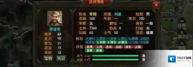 首先来看下二位上将的基础属性。“旗鼓相当”的对手啊,统率都在50左右,武力一个75一个80.