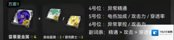 1、装配方案一:雷暴重金属4+自由蓝调2。