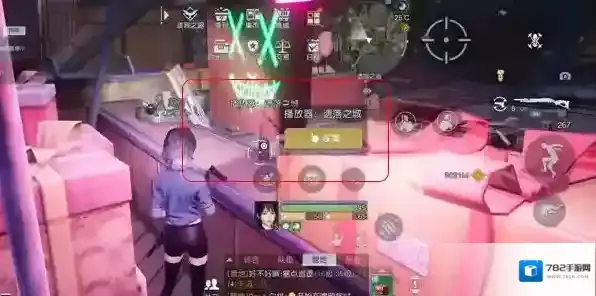 位置:位于坐标处粉色灯光的地方,播放器在荧光色笑脸的下方。