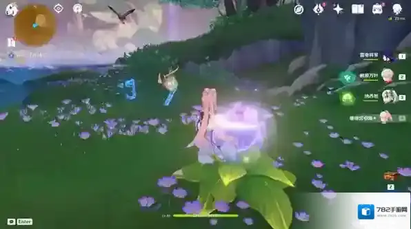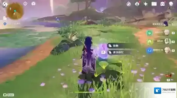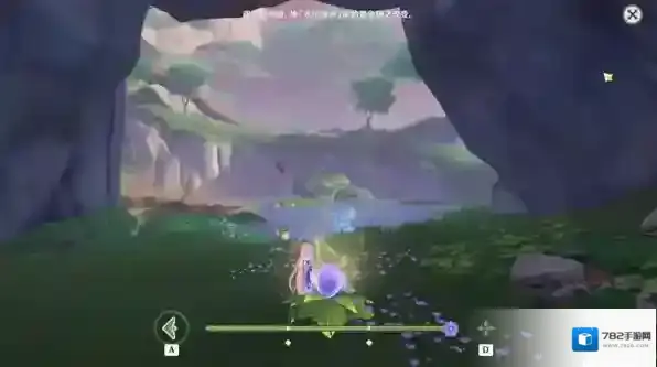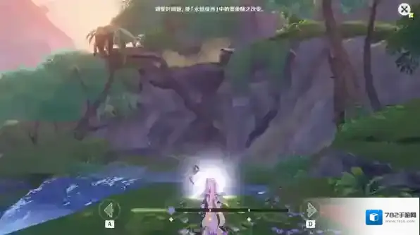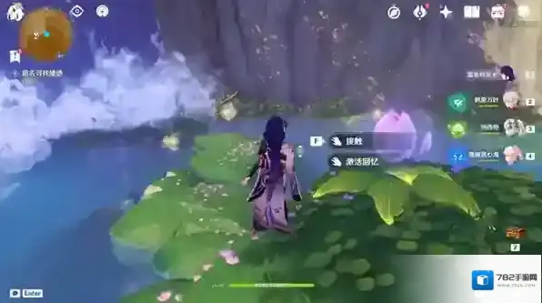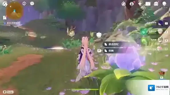 进入永恒绿洲附近的地面处有一紫色花苞,选择“接触”,跟随花苞至任务点1-1。