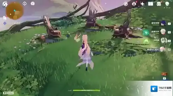 树下会显示出宝箱和草神瞳,再次接触花苞并跟随,到达任务点3-2。