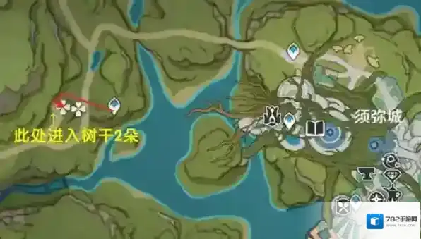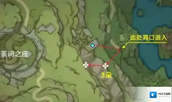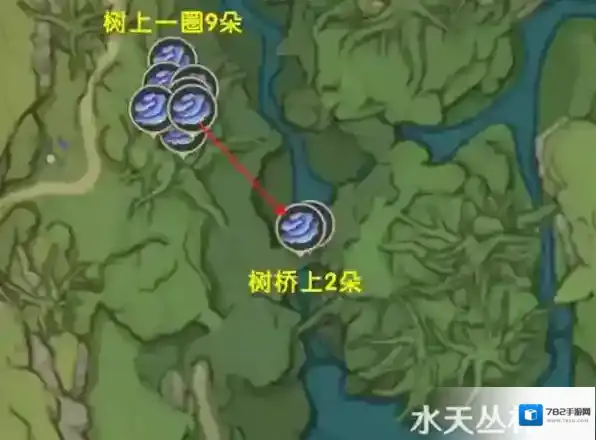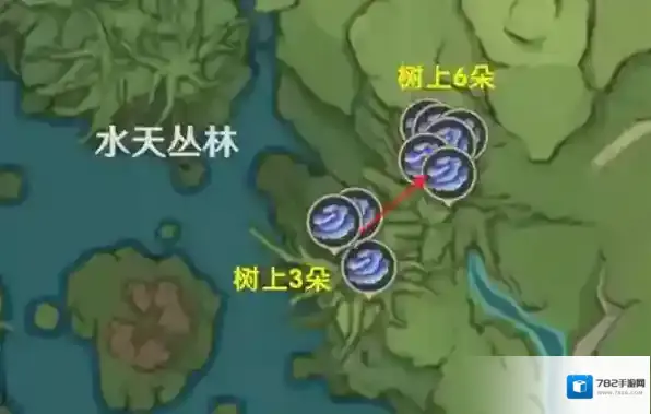 3、无郁稠林区域点位(花标记在地面,星标记在蓝色巨型蘑菇中)