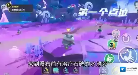 第一个刷新点位:来到瀑布前有治疗石碑的水池旁,这里就是第一个刷新点位;