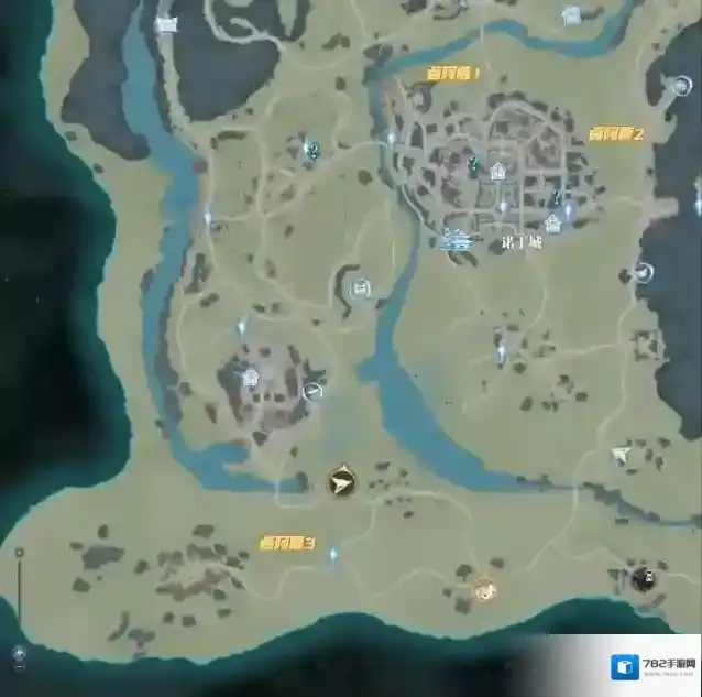 第四个是诺丁城大地图上会有3只卤阿鹿,都是30级的,打死可以掉3张抽取券,但如果我们是第一天以26级的等级去打的话,可能需要打个十几分钟……大家也可以选择第二天再去打。而3只卤阿鹿的位置分别在下图中唯一进行了标识: