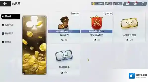 第一天的话,建议使用幻影气息兑换「行动力」「尤尔」以及「经验药水」来快速提升战力推进主线。