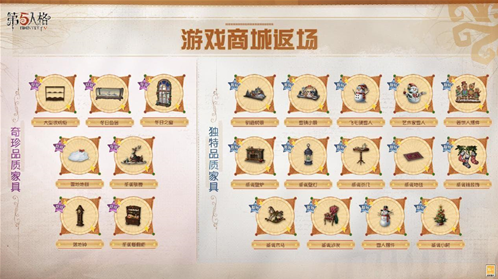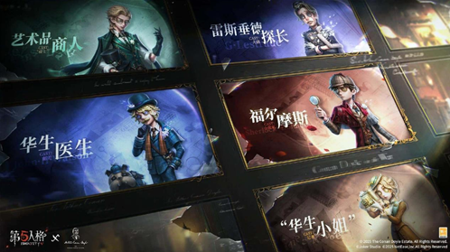值得一提的是,第五人格×福尔摩斯Sherlock Holmes联动第一弹也将同步返场!其中联动宝箱精华内含:稀世时装小说家-福尔摩斯,奇珍时装邮差-华生医生,奇珍时装大副-雷斯垂德探长,奇珍时装“骑士”-艺术品商人。联动礼包内含:稀世时装“华生小姐”及其奇珍随身物品-福尔摩斯冒险史将以礼包形式上架;联动主题奇珍归宿大厅221B也将同步返场~11月6日,探案之旅再度开启,再一次,步入回忆中的推理世界!