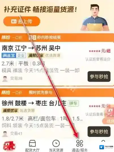 1、打开运满满司机,点击最下方的通话/服务页面。