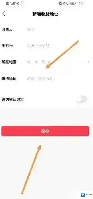 在新增收货地址页面中,输入收货地址后点击保存即可