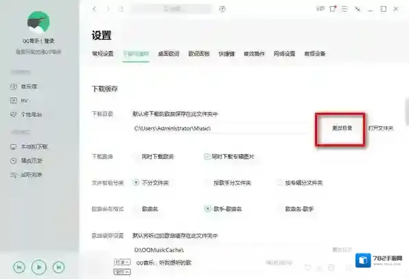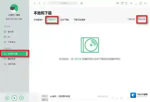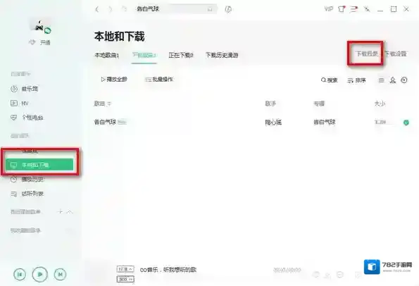 3、接下来,打开左侧的下载的歌曲,看下载的地方是否是你想要下载的地方。