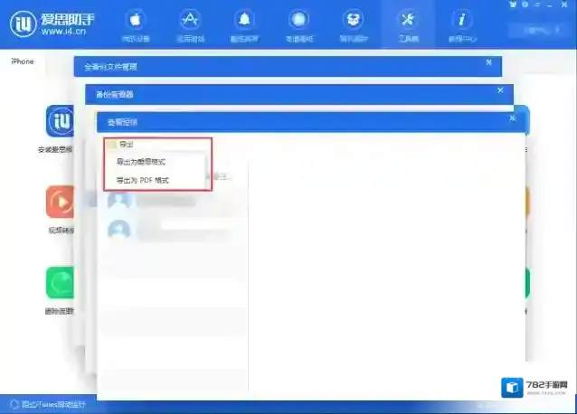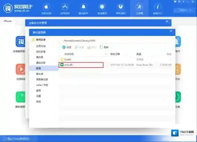 短信也可以通过爱思助手“备份查看器”查看,并导出为PDF文件;双击“短信”中的sms.db即可查看。