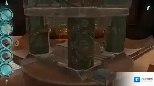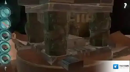 进阶第二部分,我们已经解开了圆柱体机关,圆柱打开会出现一个四脚方台,我们点击四脚方台的脚部区域,可以凑近了看到四个脚上都有一些图案。