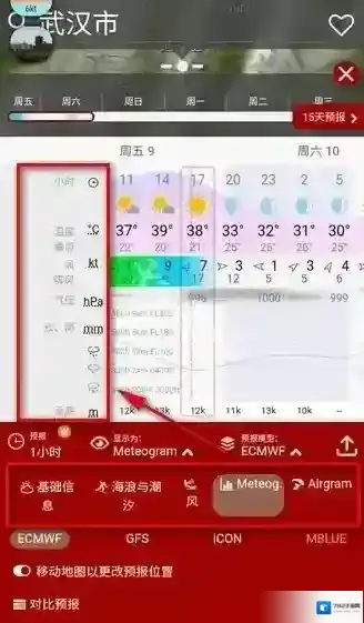 5、点击下面的基本信息,切换后面的海浪与潮汐、Meteog、Airgram等,还能查看其他天气数据。
