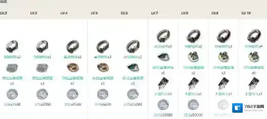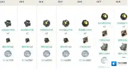 7、LV8:特制镣环x2、异构金属液滴x2、不息坏灭x1、贝币x50000