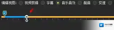 4、添加的音乐可以点击一下音乐蓝色的图标,然后通过左右的滑块调音乐时间长度,如图红箭头。