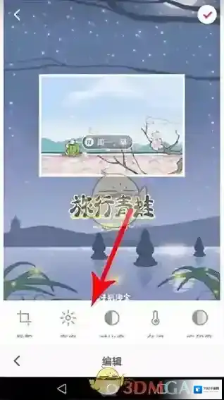 8、这时点击页面底部的编辑图标,便可打开图片编辑,这里可选的功能包括明度调整、对比度调整、饱和度调整等。