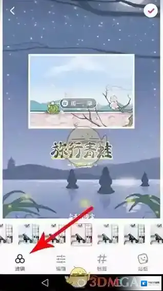 7、点击页面左下角的滤镜图标,便可打开图片滤镜编辑,系统提供多个可选项,点选其中合适的即可,可以发现在点击过程中,图片会跟着出现明暗色彩的变化。