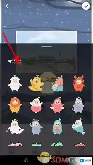 9、这次点击页面底部最右侧的贴纸图标,便可打开一堆贴纸,您只需要点选并拖动喜欢的图纸到图片上即可,位置可以随意调动。