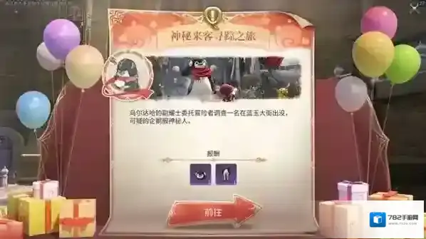“神秘来客寻踪之旅”是活动支线任务,跟随任务指引完成任务帮助企鹅打扮的神秘人解决遇到的麻烦,即可获得时装企鹅玩偶服,包含头部及身体两个部位。任务流程中还能够试骑商城坐骑“兜兜企鹅”,后续还能够通过活动NPC反复试骑该坐骑。