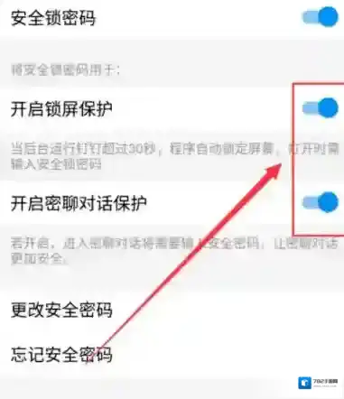 5.接着在安全密码锁定页面中点击开启安全锁密码。