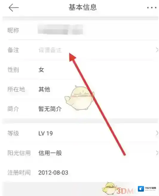 6、进入好友基本信息后,我们就点击昵称下面的备注,就可以进行添加或修改了,如图所示,