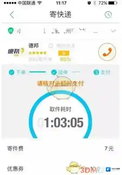 4、寄快递费用也可以在线结算支付,比如说你寄了一个7块钱的快递,用了你抢到的10块钱的优惠券抵扣,免费寄快递就搞定了!