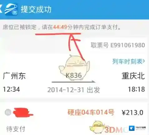 8.订单提交成功,在45分钟内付款即可,因为这是“买票”而不是“抢票”,所以都可以正常购买到。