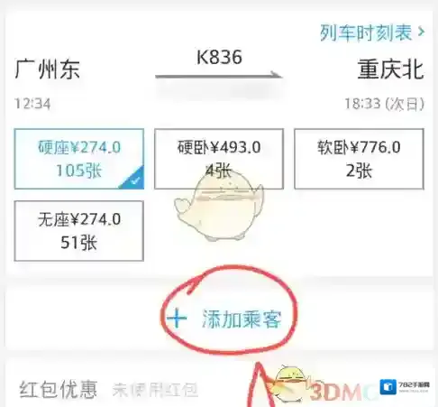 6.登录成功之后,就可以选择12306账户中已添加的联系人(乘客)。