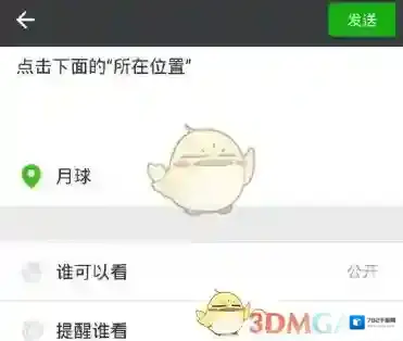 此时就可以在定位位置的那里看到我们刚才自己创建的位置了,点击“发送”后,你的朋友就可以看到该位置定位