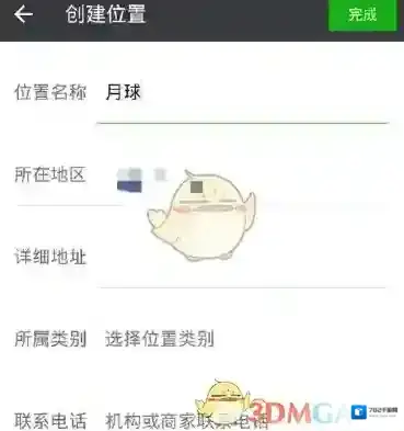 点击后就会出现下图所示的界面,点击一下“完成”,你要自己定位的位置就创建完成了