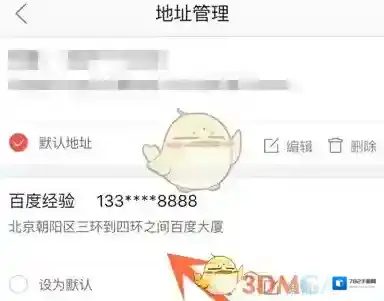 点击“保存”按钮,即可在地址管理界面显示新地址,如果新地址常用,可设为默认。