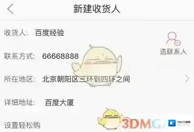 进入新建收货人界面,填写个人信息、联系方式、详细地址等;
