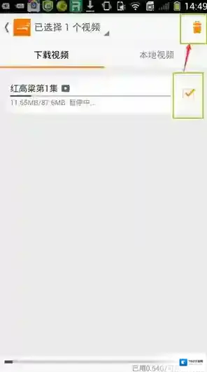 3、进入下载管理界面,对下载中的电视剧打“√”,在点击“删除”按键。