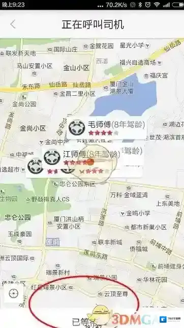 6、觉得没问题以后会到页面中,点击呼叫司机,系统就会进行呼叫,进入等待呼叫司机的界面,不用一会就可以叫到司机了。