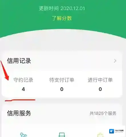 6、打开支付分后,即可看到我的微信支付分守约记录,目前小编守约记录为4条