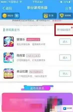 3、进入“游乐园”中后,可以通过参加幸运拉霸活动获得一定的金币。每天前两次免费,后面10积分一次,可以操作5次。一共7次;