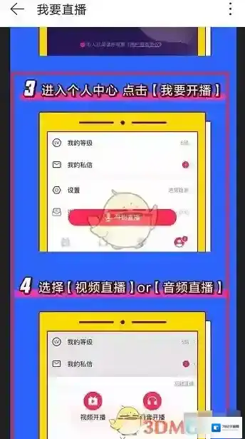 5、第五步按照步骤进行开通直播就完成了,直播有音频直播和视频直播两种,如下图所示: