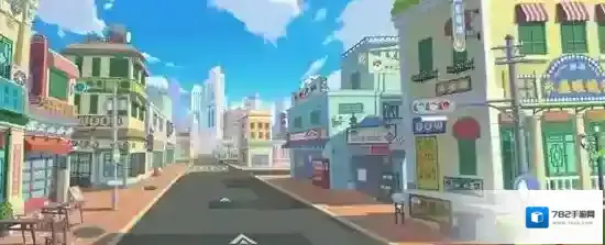 进入平台商业街后,车手们能够看到四通八达的道路两旁一栋栋商铺整齐地排列着。