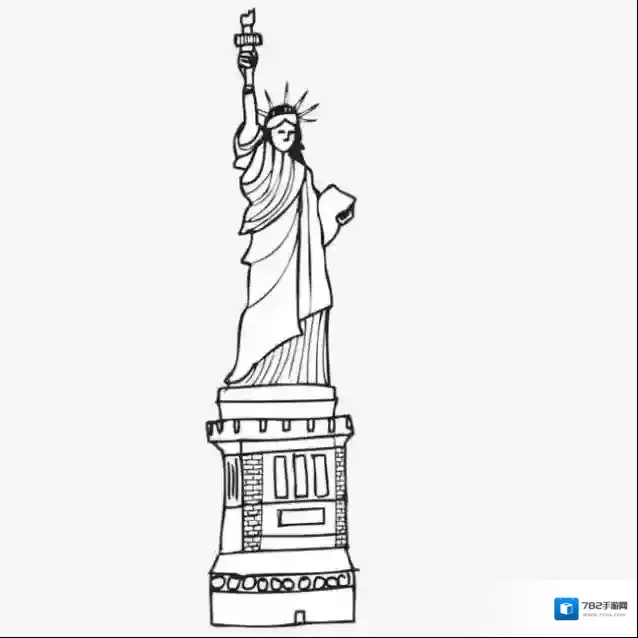 2、自由女神像中自由女神左手举着火炬,我们可以把火炬也画出来。